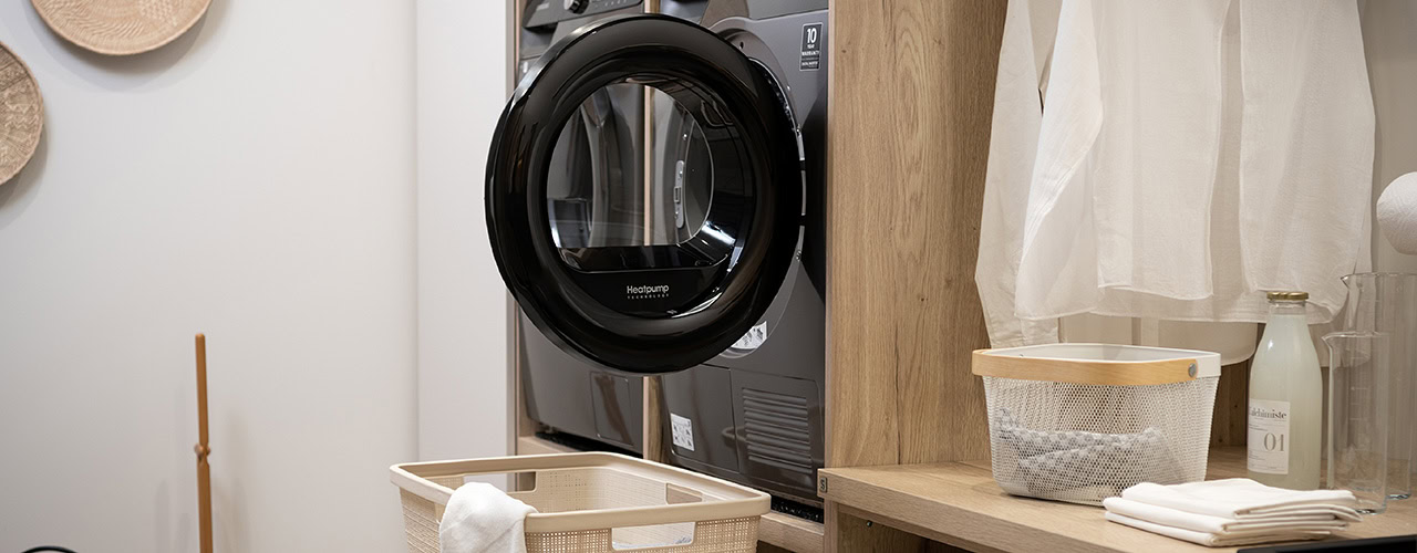 Har du et lille bryggers? Så kan kombinerede maskiner, skydedøre og vægmonterede tørrestativer være guld værd. Vælg gerne lyse farver og glatte overflader, som får rummet til at virke mere luftigt.