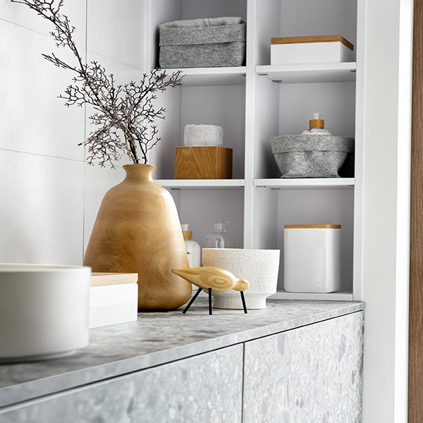 Hos Schmidt Køkken vægter vi god opbevaring, smukt design og funktionelle løsninger. Hvordan? Med over 80 års erfaring og kompetente konsulenter forstår vi at imødekomme ethvert krav. Derfor finder du masser af god inspiration til badeværelset hos os. Book et gratis møde i dag, så du kan få den personlige indretning i badeværelset, du drømmer om. Vi skræddersyer efter dit hjem, dine behov og din personlige stil. På den måde kan du få et godt badeværelse med plads og æstetik tænkt ind ethvert hjørne.